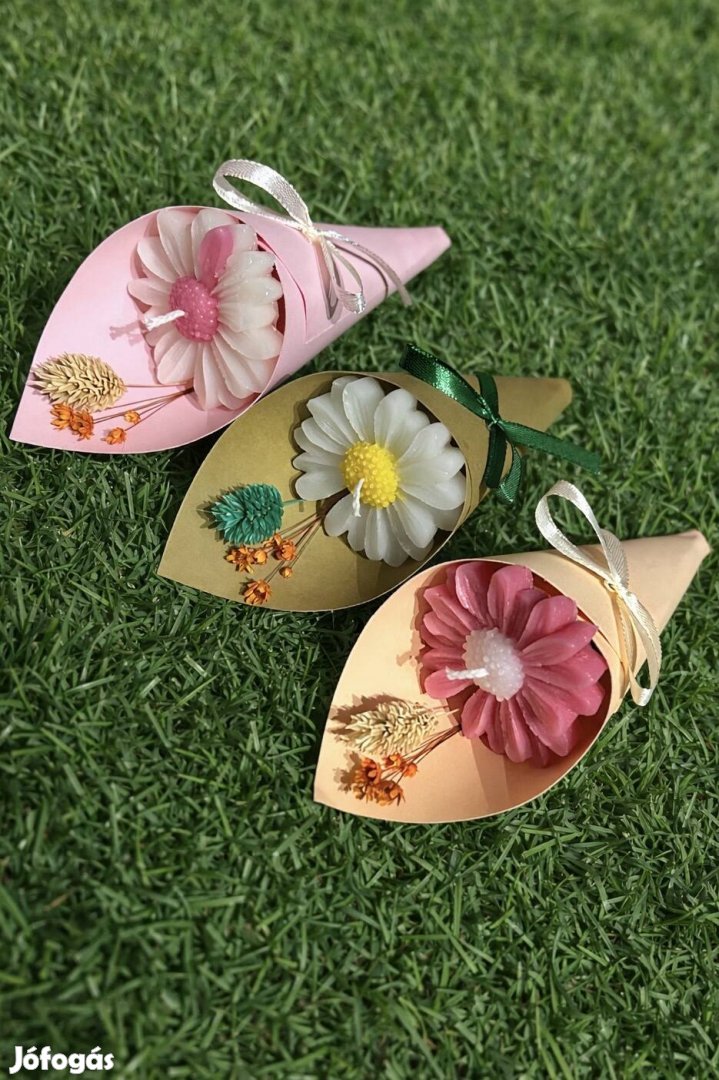 3D gyertya virágokból készült margaréta csokor igazi meglepetés nőnapra. A gyertya virágok illat mentesek!
