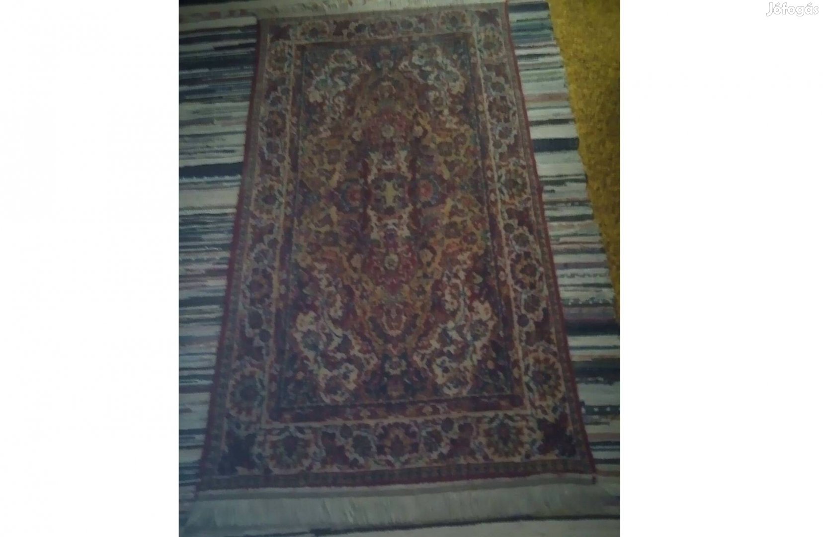 Rojtos végű perzsszőnyeg 150 cm hosszú,72 cm széles.Szine bordó,barna,fekete ,drapp mintás.Ára 9500 Ft.