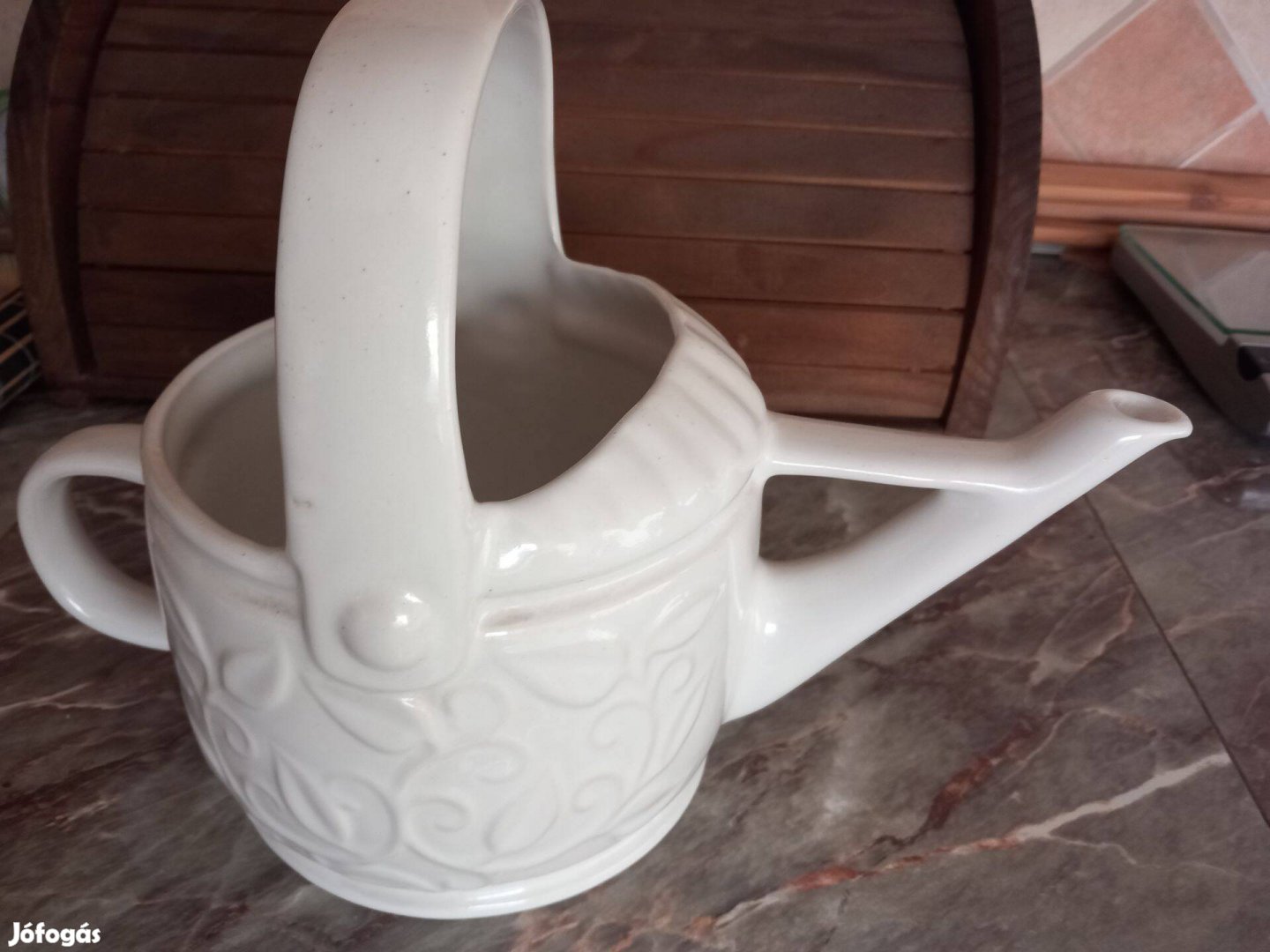Eladó a képeken látható új, sosem használt, nagyon szép állapotú fehér kerámia öntöző kanna az oldalán nyomott mintával, kb. 1 literes.
