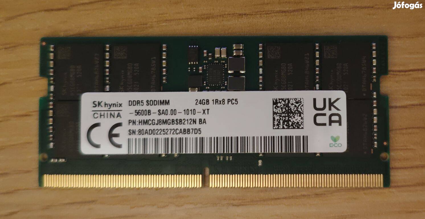 Eladó egy 24GB DDR5-5600 Hynix so-dimm ram modul.