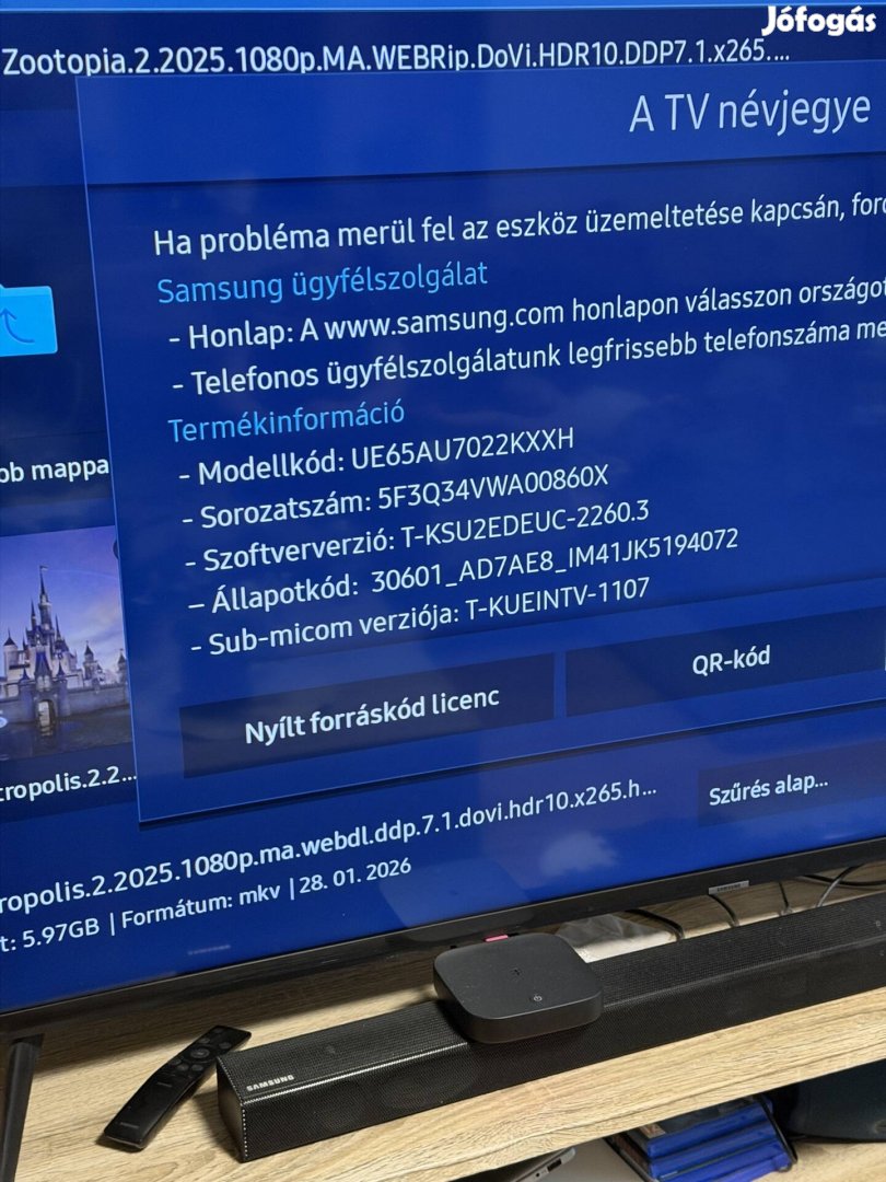 Eladó Samsung LED televízió, nappaliban használt, nagyobbra váltás miatt.