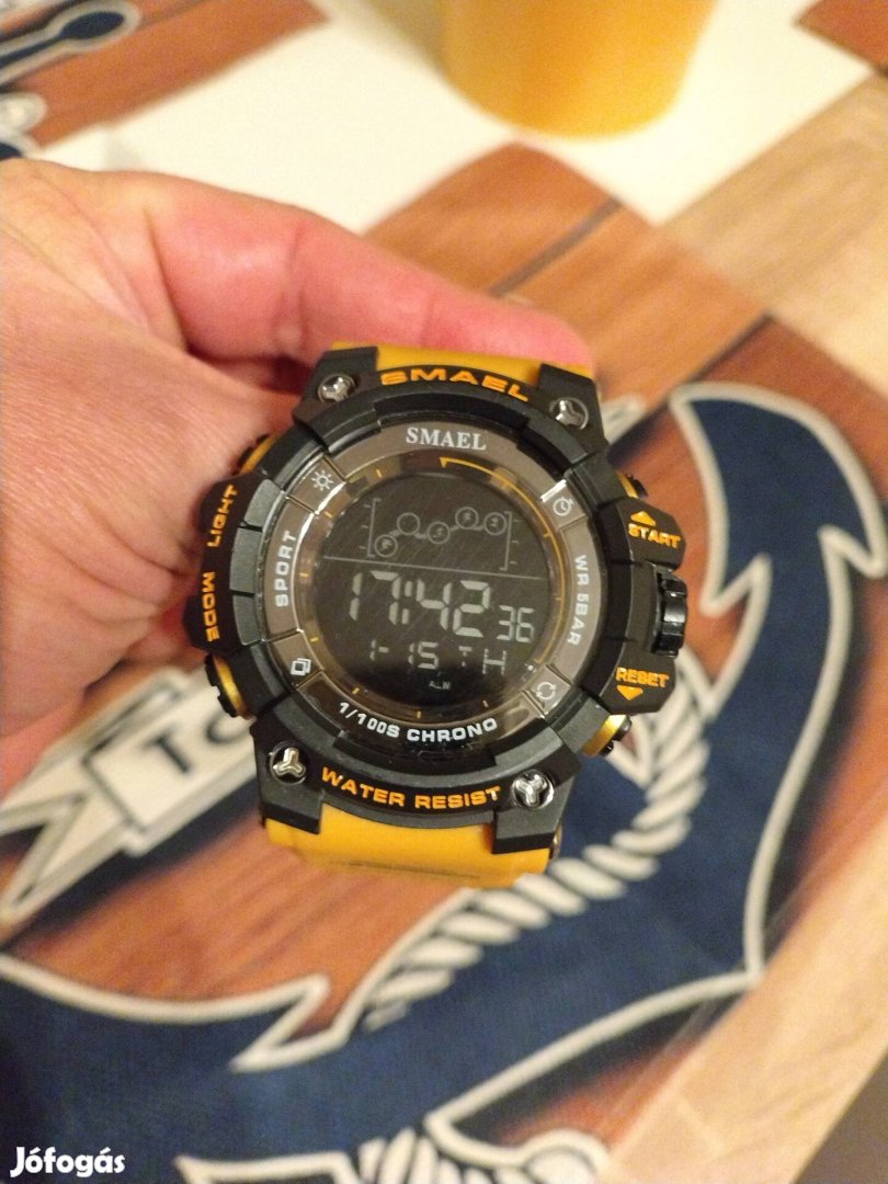 Smael nagyméretű férfi karóra .Csak pár alkalommal volt kézen.Ébresztő, óránként jelez,világítás..stb.