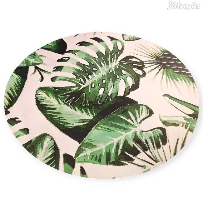 Tányértartó kerek formában, nyári mintával és trópusi zöld levelekkel díszítve. Praktikus és dekoratív kiegészítő a nyári asztalterítéshez.