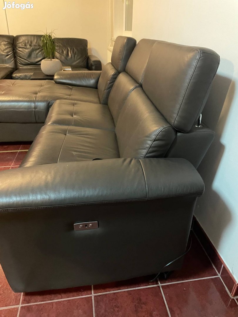 Elektromosan relax fotellá alakítható! Alap állapotában L alakú textilbőr kanapé. Kitűnő állapot.