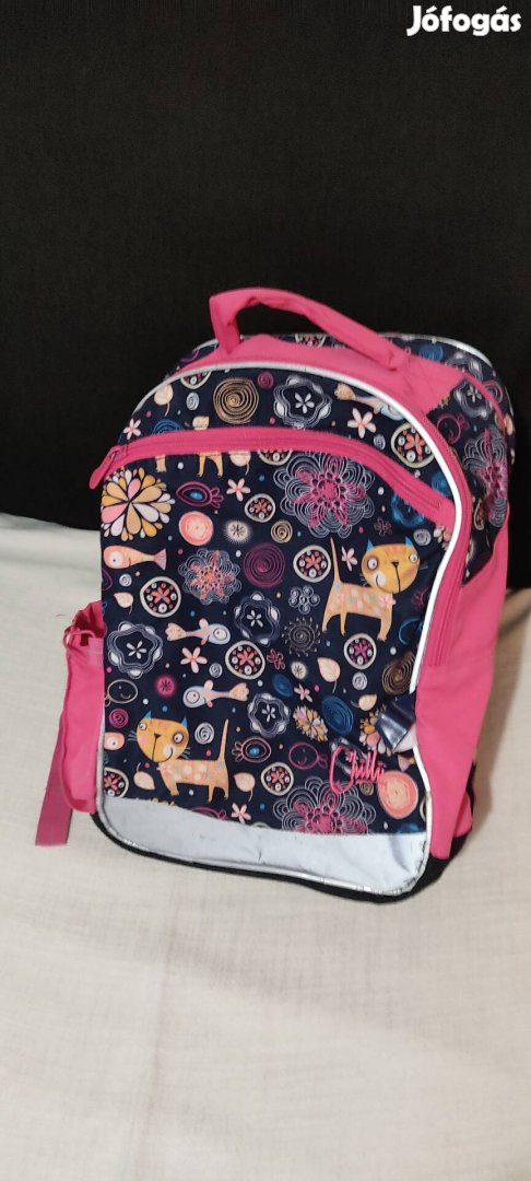 Eladó egy Topgal típusú iskolatáska, cicás mintával, alsósoknak, ergonómikus merevítővel ellátott hátfal.