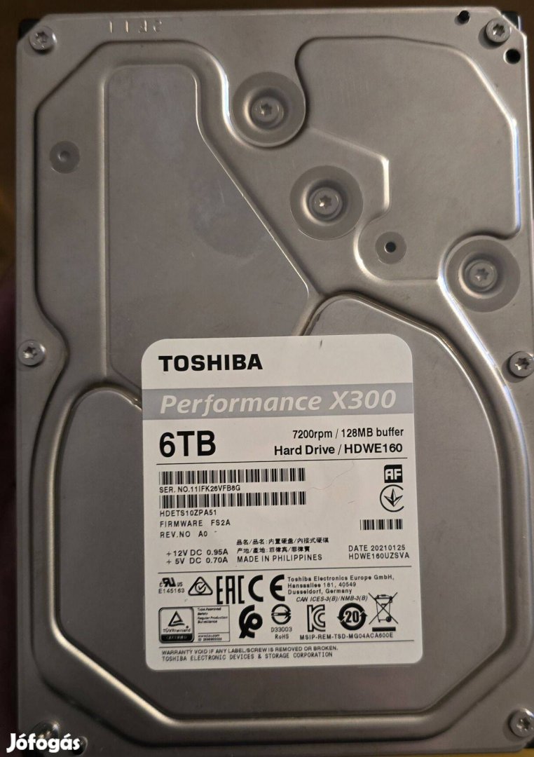 Toshiba X300 6TB HDD, 1 hónap garanciával.
