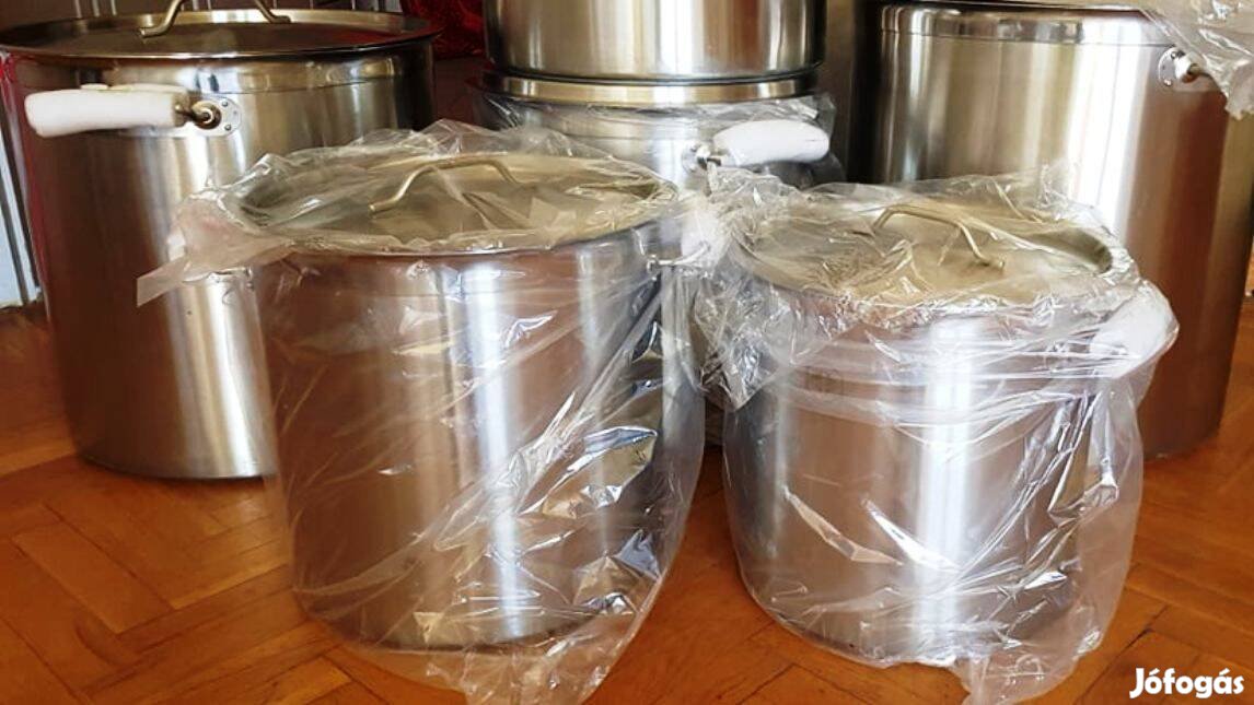 Új rozsdamentes acél edény ipari fazék fedövel 25 - 100 literig