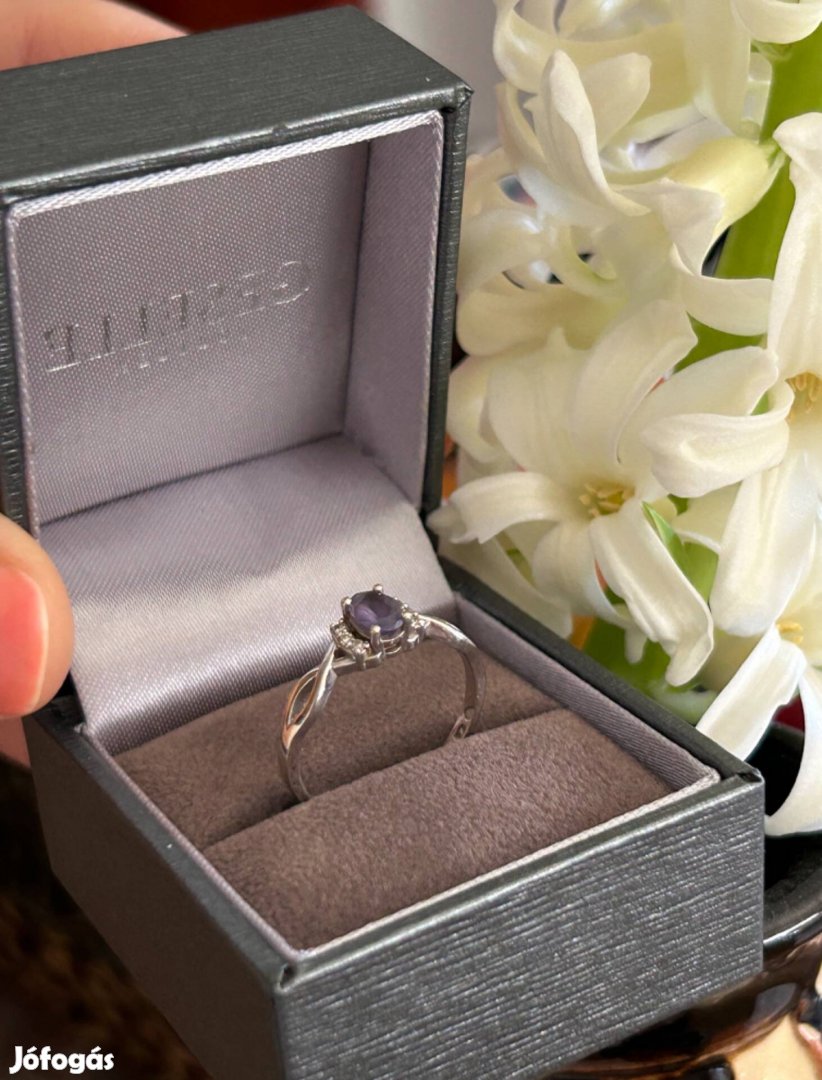 Eladó prémium Geselle 14k fehérarany új eljegyzési gyűrű: valódi, kiváló minőségű tanzanit és brill kövek, certifikáció, számla, eredeti díszdobozban:
