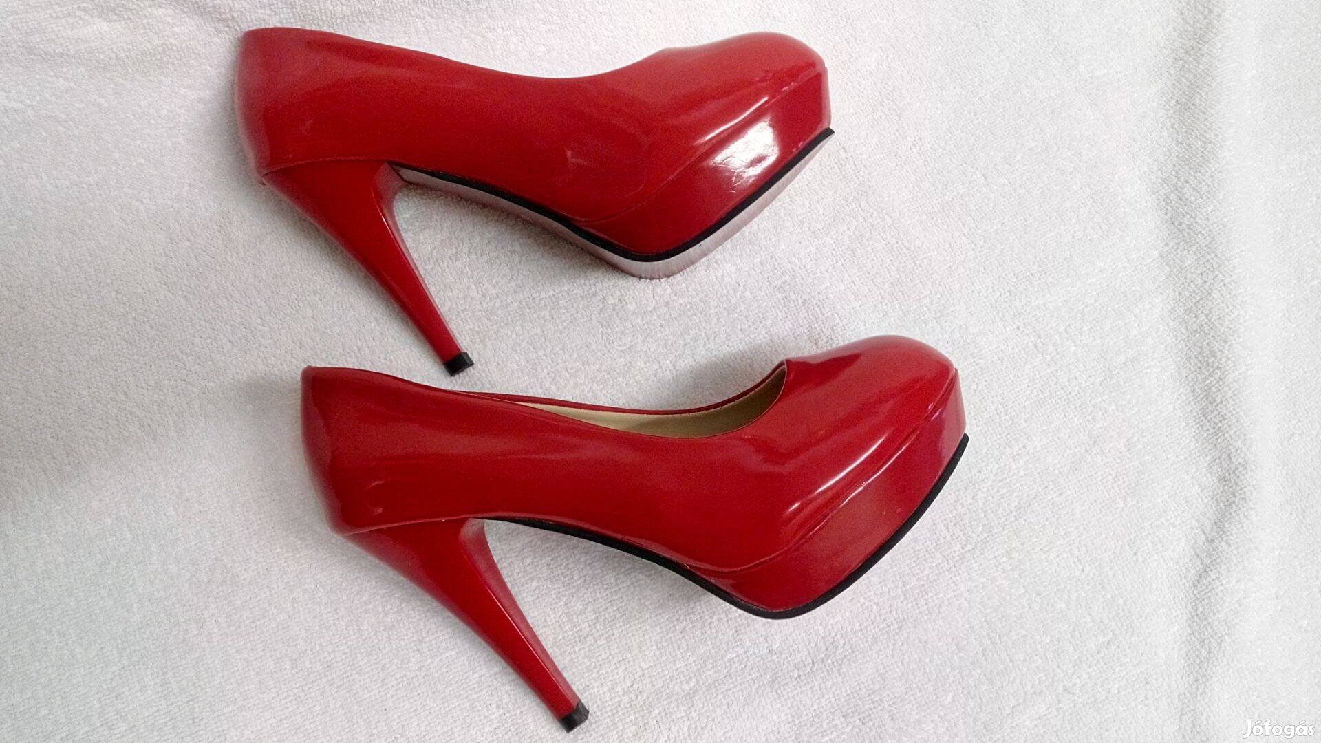 Új tűzpiros platform Tűsarkú lakk körömcipő