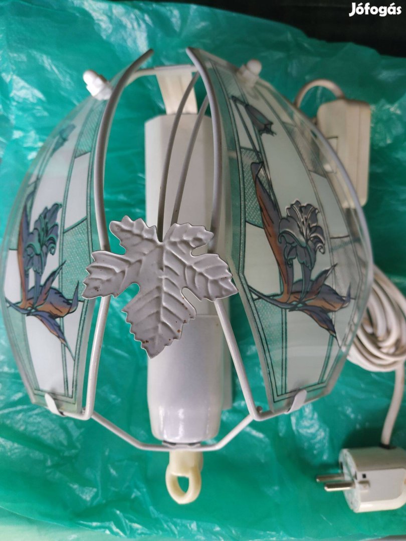 Újszerű állapotú lámpa színes mintás üveg kombó Fehér fém váz