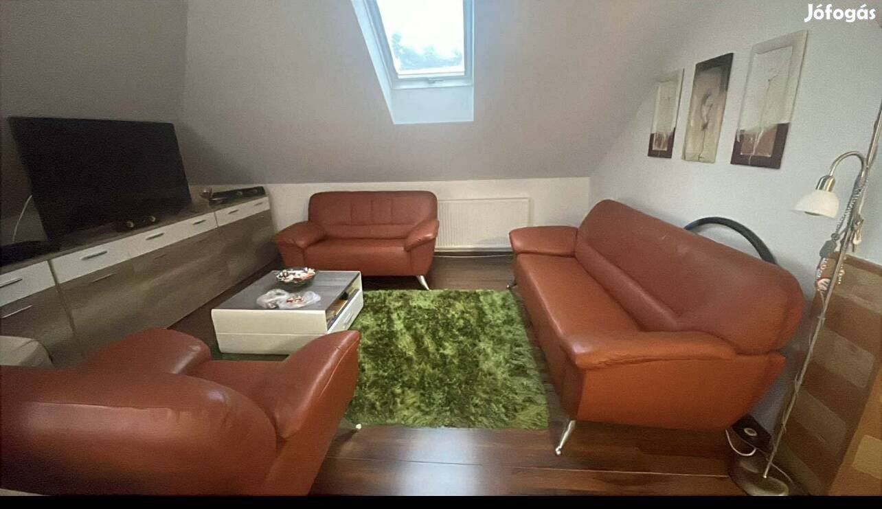 Terrakotta színű 3-2-1 Bőr ülőgarnitúra megkímélt állapotban.