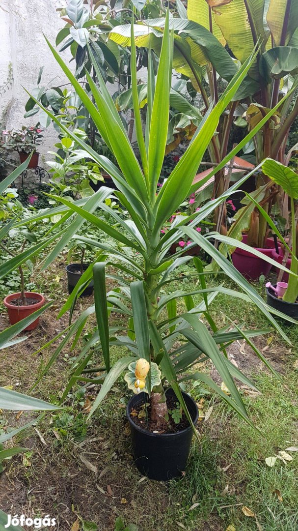 Eladó a képeken látható Yucca, szép egészséges növény. Magassága 135 cm . A yucca az igénytelen növények közé tartozik, ezért egyszerű nevelni. Jól érzi magát a szárazabb levegőjű lakásokban, rendszertelen öntözést is elviseli. Nyáron ki lehet tenni a szabadba, erkélyre, teraszra, szereti a napos helyet. Szép, mediterrán hangulatot keltő növény. Ára: 8500,-;