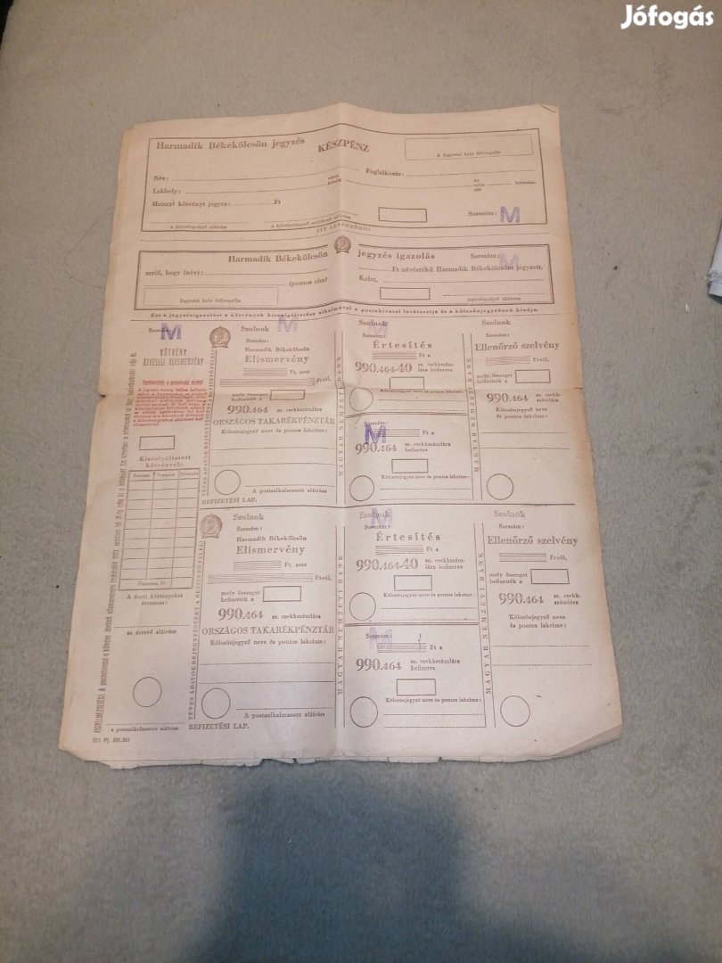 Eladó antik készpénz irat fellelt állapotban.A feltüntetett ár irányár.