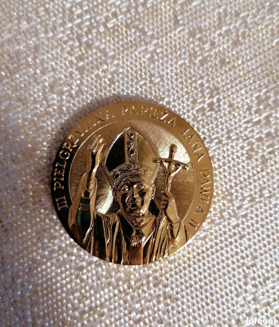 Eladó aranyozott II.János Pál pápa érme fellelt állapotban.A feltüntetett ár irányár.
