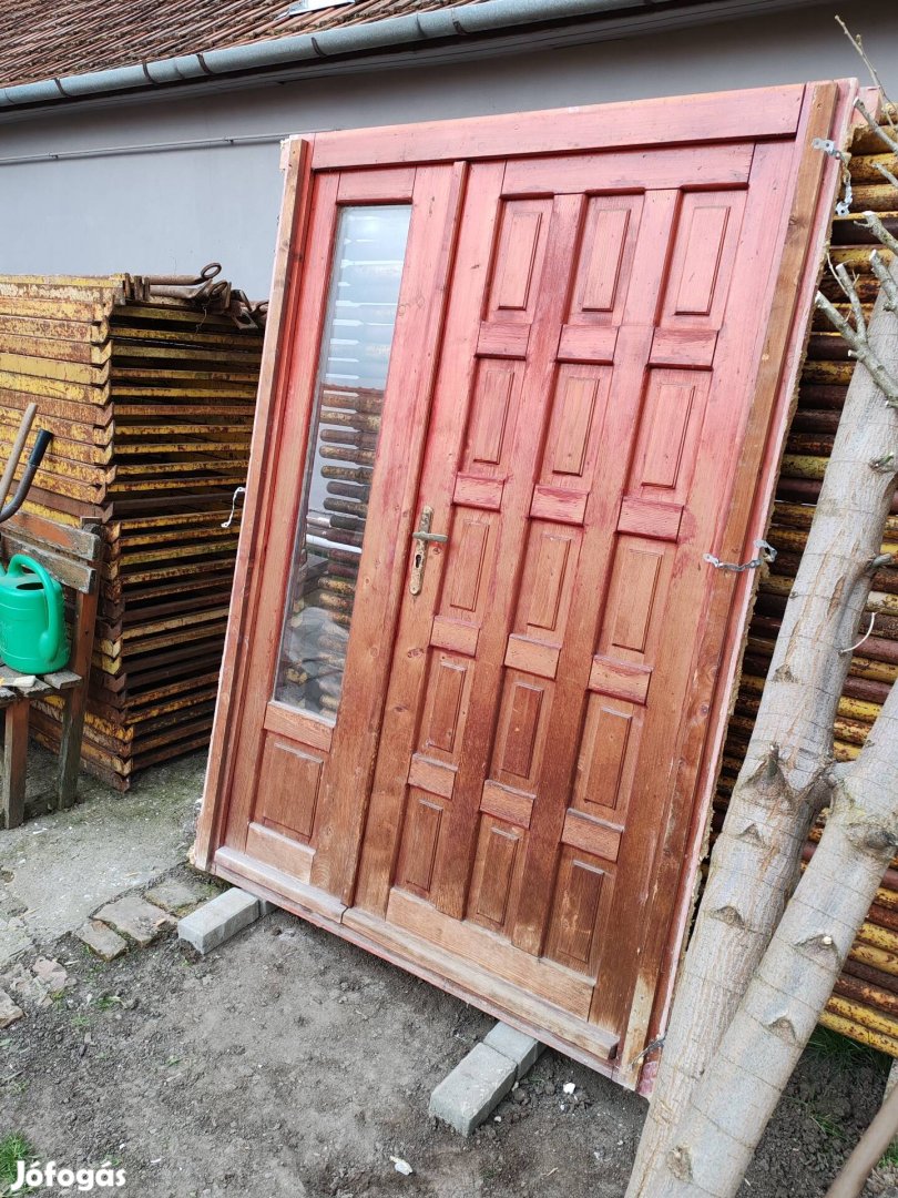 Eladó kültéri bontott fa ajtó a tok mérete 140 X 203 cm