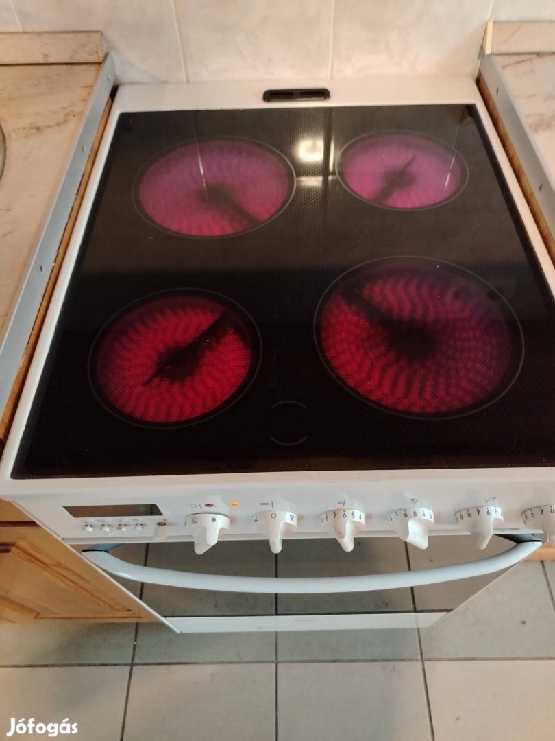 Szép állapotban lévő villanytüzhely eladó hőlégkeveréses sütővel, időzítő órával teleszkópos kihuzható sütő