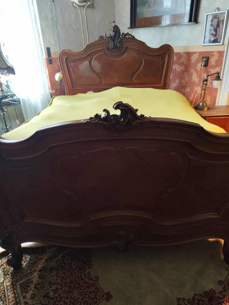 Antik stílusú faragott fa franciaágy eladó