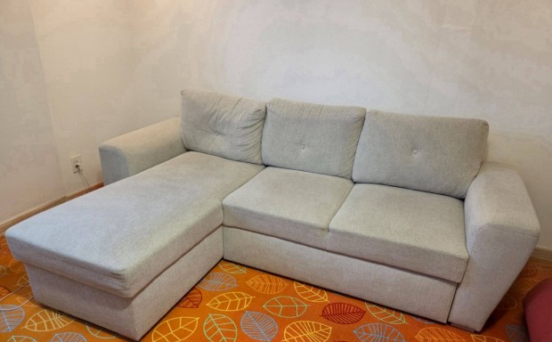 L alakú nagy kanapé, kihúzható, ágynemű tartós