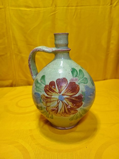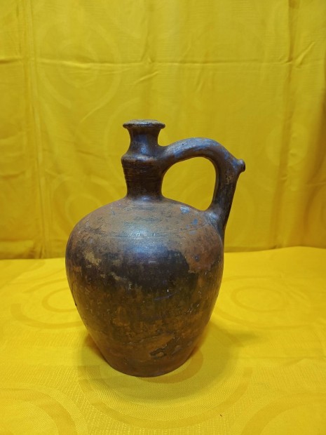 Régi mázas cserép korsó, vizes korsó