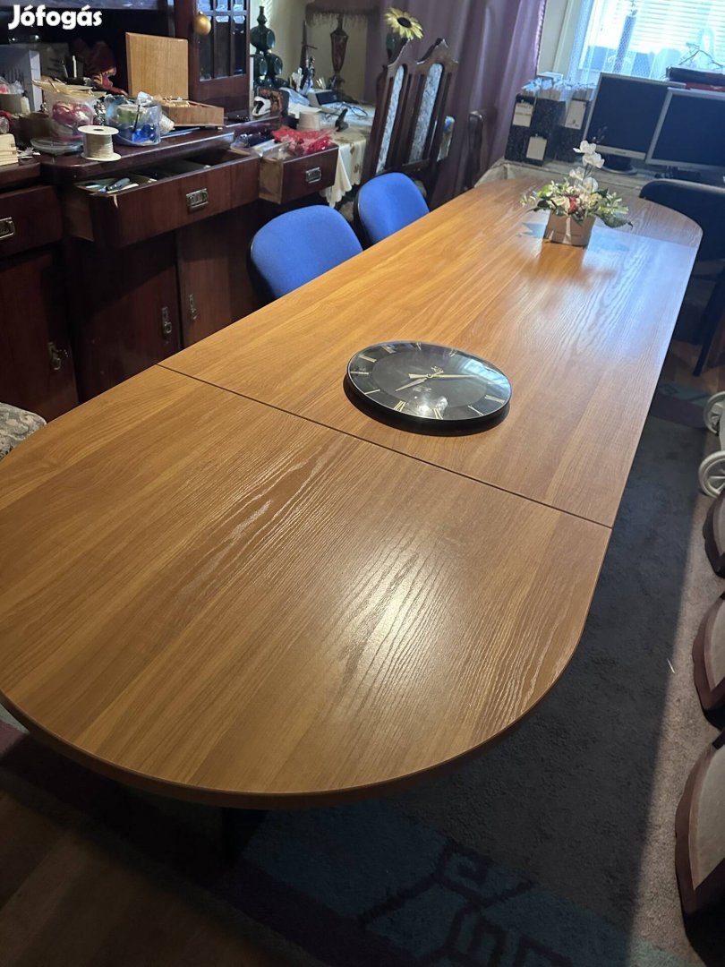 Eladó a képen látható 10 12 személyes tárgyalóasztal 6 db székkel mérete 290x80