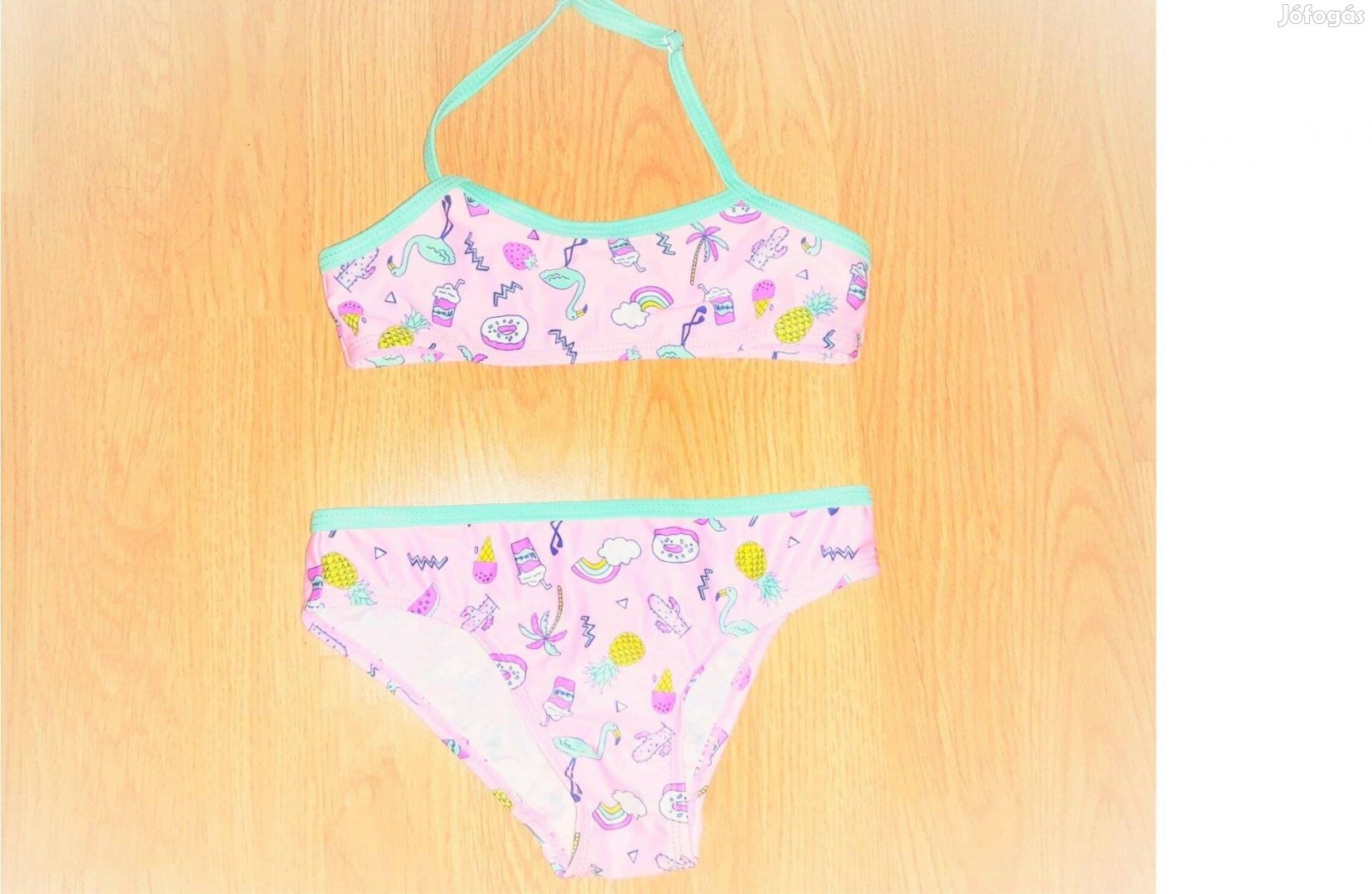 110/116 újszerű cuki flamingó mintás bikini fürdőruha