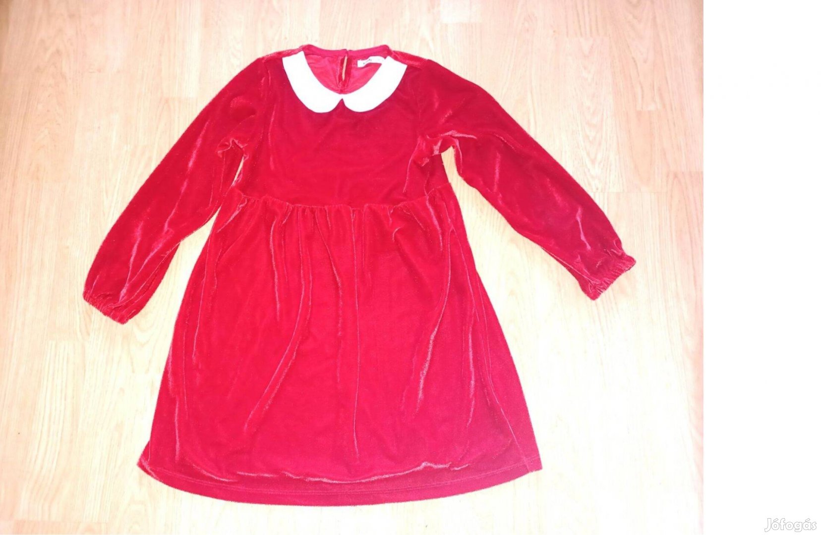 Új, Sinsay márkájú, cuki fehér galléros, piros színű, derékban elvágott és alatta húzott, hosszú ujjú plüss ruha eladó