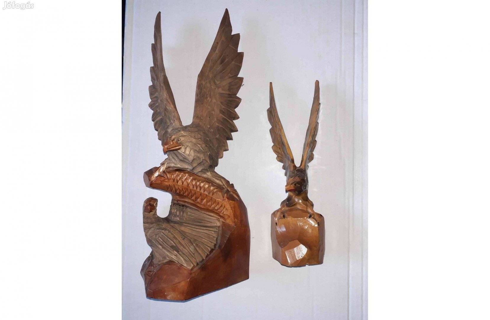 2db fából faragott sas szobor