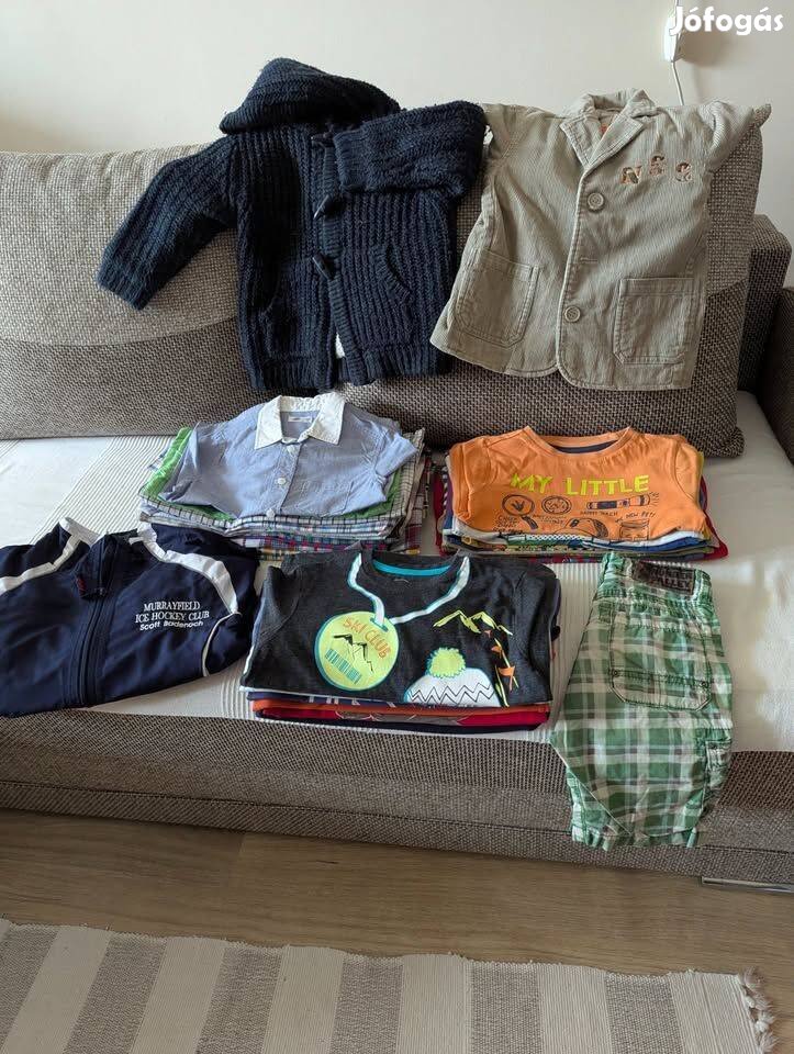 34db fiú ruha vegyesen, méret 104-116. Pulóver, kabátok, hosszú és rövid ujjú polók, nadrág.