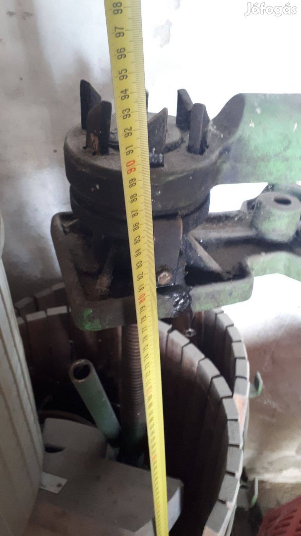 Öntöttvas váz, kb 60cm-es kosár, masszív acélcsiga, racsnis hajtókar, erőfokozó áttétel. Akár dísznek is kiváló az állapota, de természetesen használata is teljesen alkalmas.