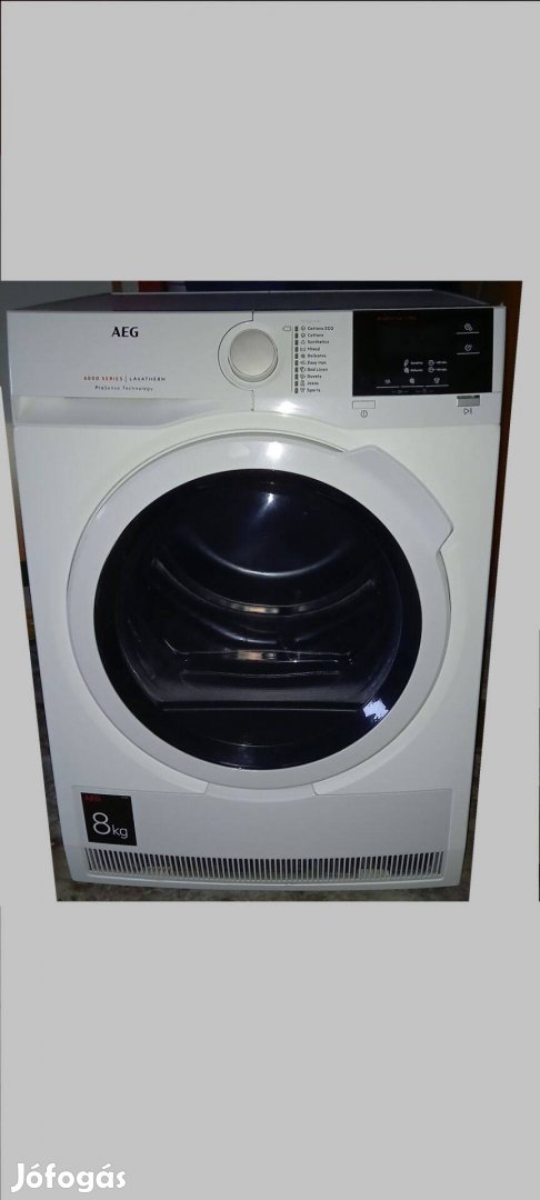 Eladó egy Aegt6Dbg28W szárítógép. A gép működőképes, de működéskor erőteljes súrlódó hangot ad.