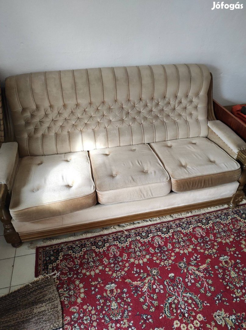 Jelképes áron eladó a képeken látható ágyfunkciós kanapé, a hozzá tartozó 2db fotellal együtt. A kanapé matracának az egyik oldalán van egy szakadás (fotózva), de a funkcióját nem befolyásolja. Pakolásban tudok segíteni, de szállításban nem. Szükség esetén megegyezés tárgya lehet egy hozzájuk tartozó dohányzóasztal is.