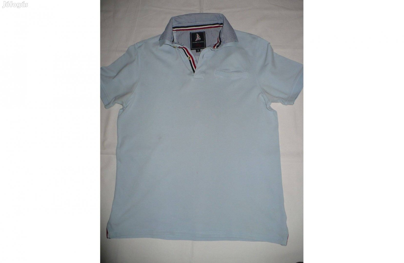 Megkímélt állapotú Andrew James férfi világoskék pólóing, M-es méretben