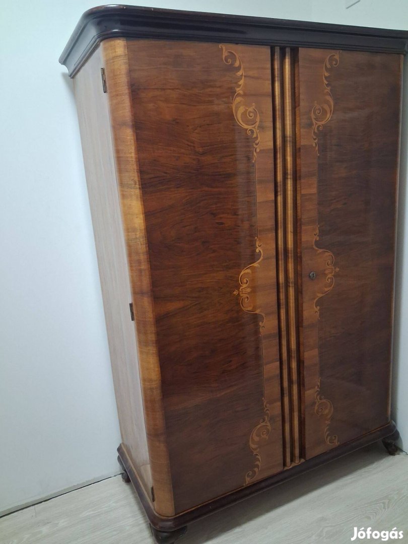 Eladó a képeken látható 2 db politúrozott ruhásszekrény polcokkal, akasztórúddal.
