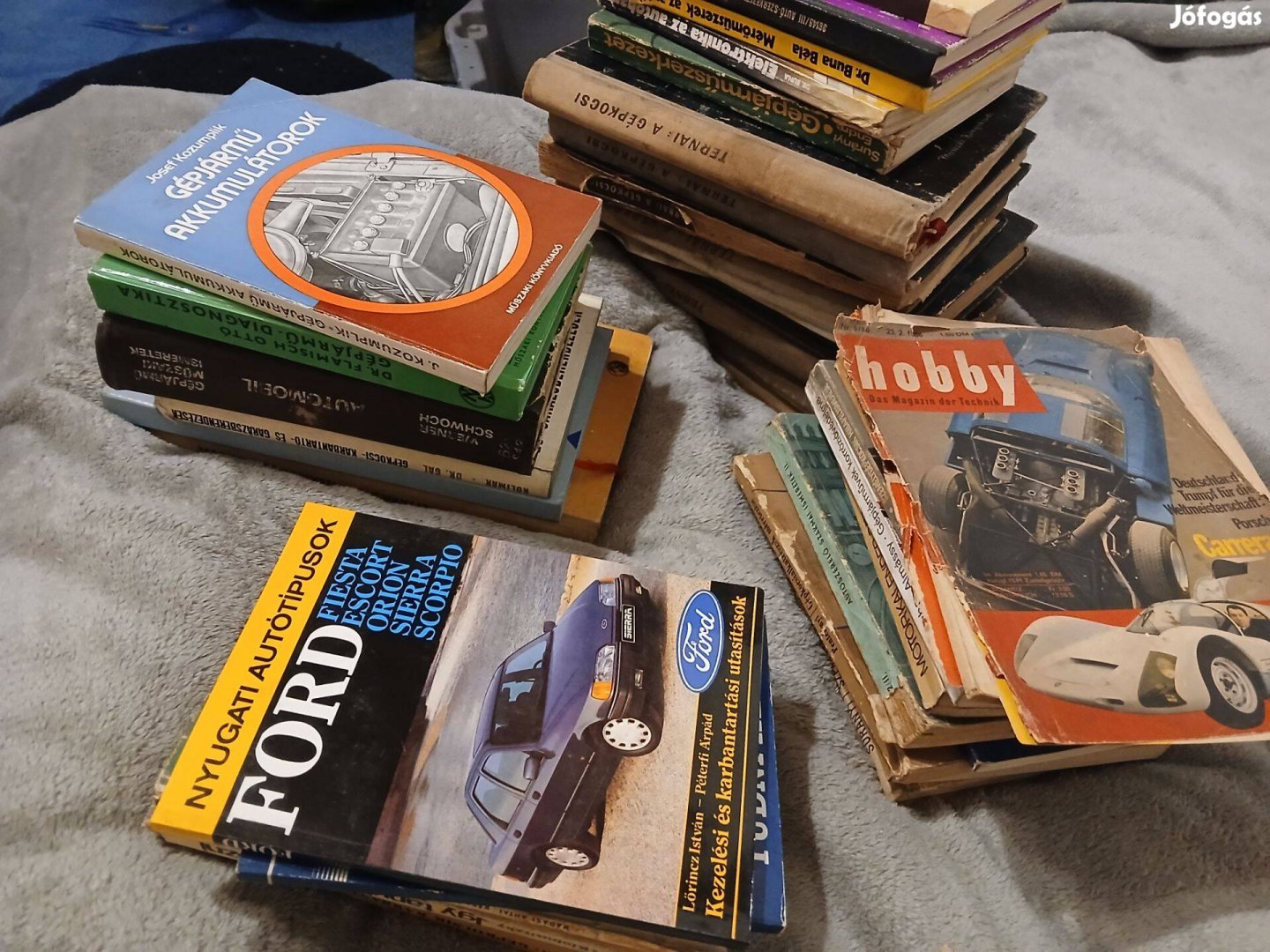 Több, mint 30 db gépjárművekkel kapcsolatos könyv csomagban, 3 db ajándék füzetecskével, fellelt állapotban. Vannak közte nagyon szépek, de sajnos szakadtak, foltosak is. Egyben 30.000 Ft + szállítási díj
