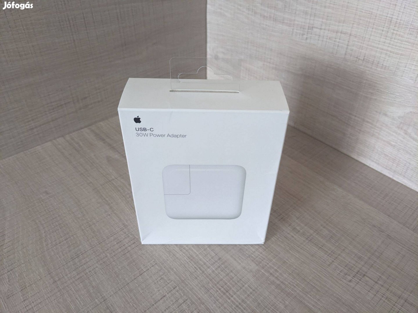 Új (bontatlan), 30 W-os Apple hálózati töltőfej, USB-C csatlakozóval.