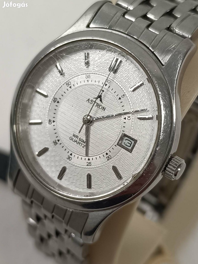 Eladó Astron quartz karóra, dátum kijelzéssel, WR50M felirattal.