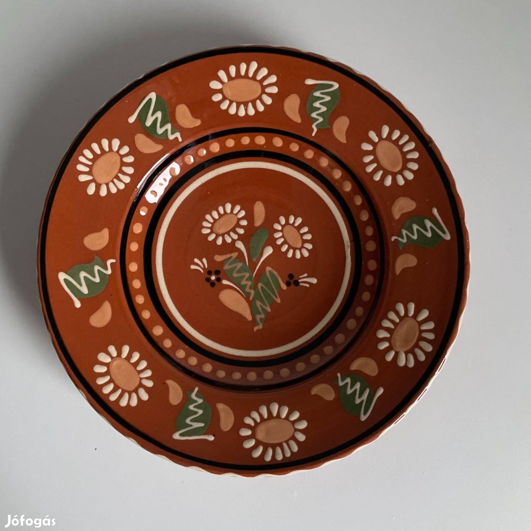 Barna virág mintás régi kerámia tányér