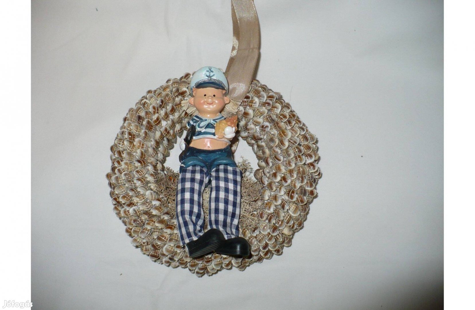 Új, nem használt bejárati ajtódísz, apró kagylókkal és matróz figurával