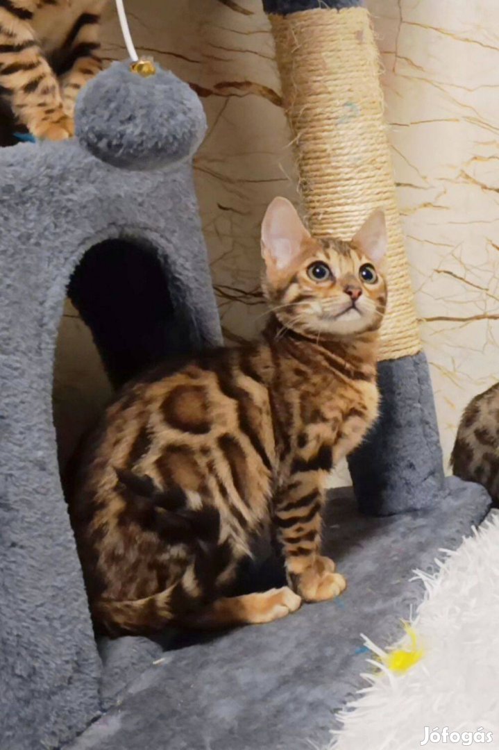 16 hetes Törzskönyvezett bengáli kislány cica keresi gazdiját. Oltva, chippelve, egészségügyi kiskönyvvel, ivartalanítási kötelezettséggel, hobbi törzskönyvvel, negatív tesztekkel, állatorvosi igazolással, kezdőcsomaggal, szerződéssel és számlával költözhet új otthonába.