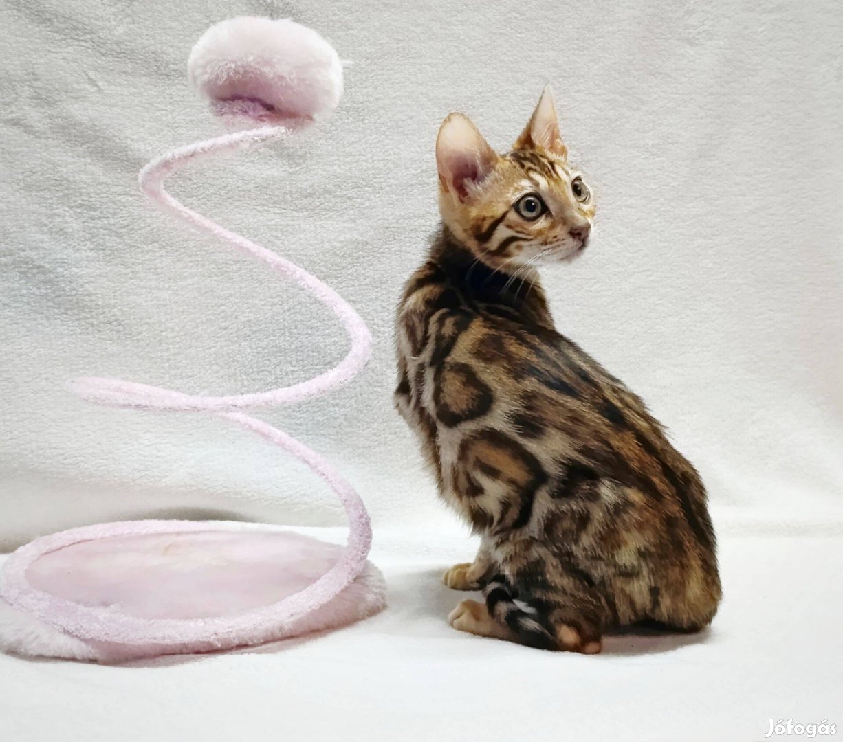 12 hetes Törzskönyvezett bengáli kislány cica keresi gazdiját. Oltva, chippelve, egészségügyi kiskönyvvel, ivartalanítási kötelezettséggel, hobbi törzskönyvvel, negatív tesztekkel, állatorvosi igazolással, kezdőcsomaggal, szerződéssel és számlával költözhet új otthonába.