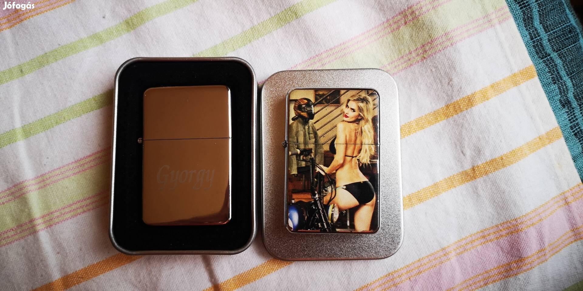 Kihasználatlanság miatt olcsón eladók a képeken látható új diszdobozos star /Angol/ Gyorgy gravírozott, illetve fürdőruhás nő mintás újszerű bezines öngyújtók 2500Ft /Db vagy 4000Ft a kettő együtt!