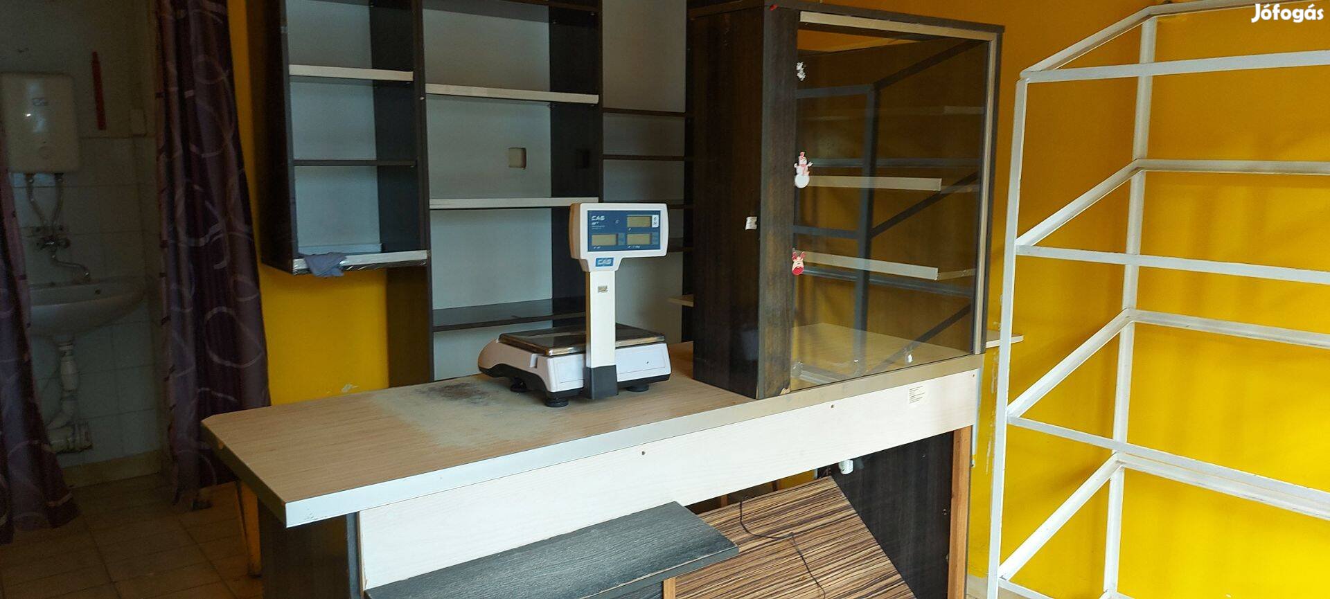 Zöldségesbolt berendezései eladók. 2 rekeszállvány, 1 db fém állópolc, 1 eladópult, 1 falipolc. Ajándék 1 db. Coca-Colás megállítótábla.