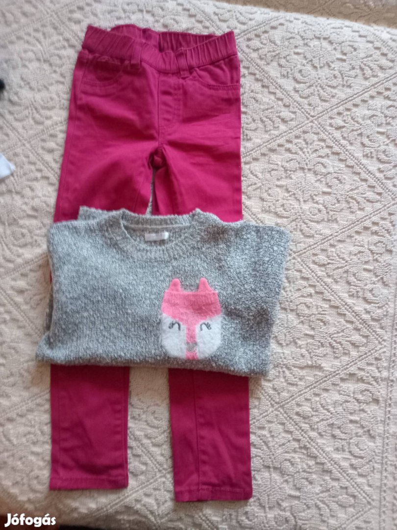 Bordó farmer nadrág kötött pulóverrel 116-os méret