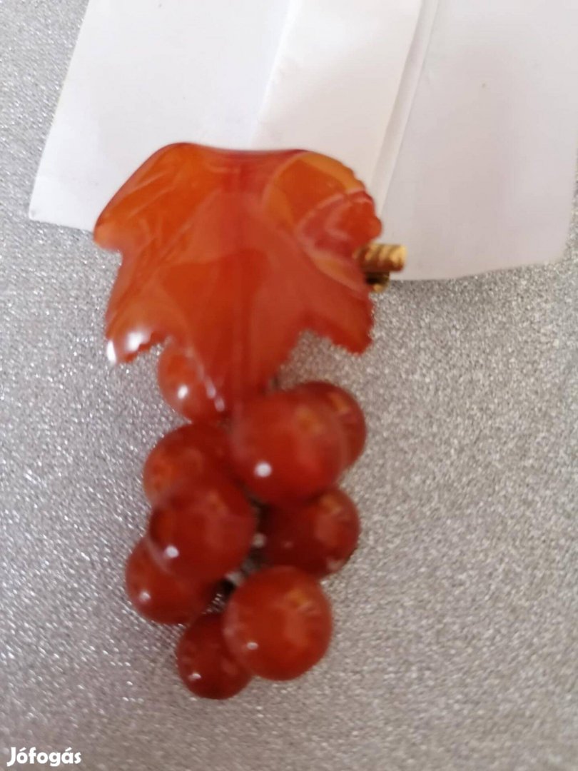 Miskolcon eladó 1 eredeti borostyán szőlő / szőlőlevél alakú kitűző, bross, nagyon dekoratív.
