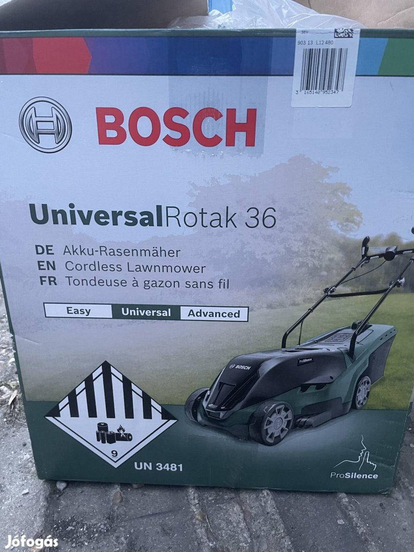 Bosch rotak 36-590 típusú akkumulátoros fűnyíró eladó teljesen új csak a képek kedvéért lett ki bontva .