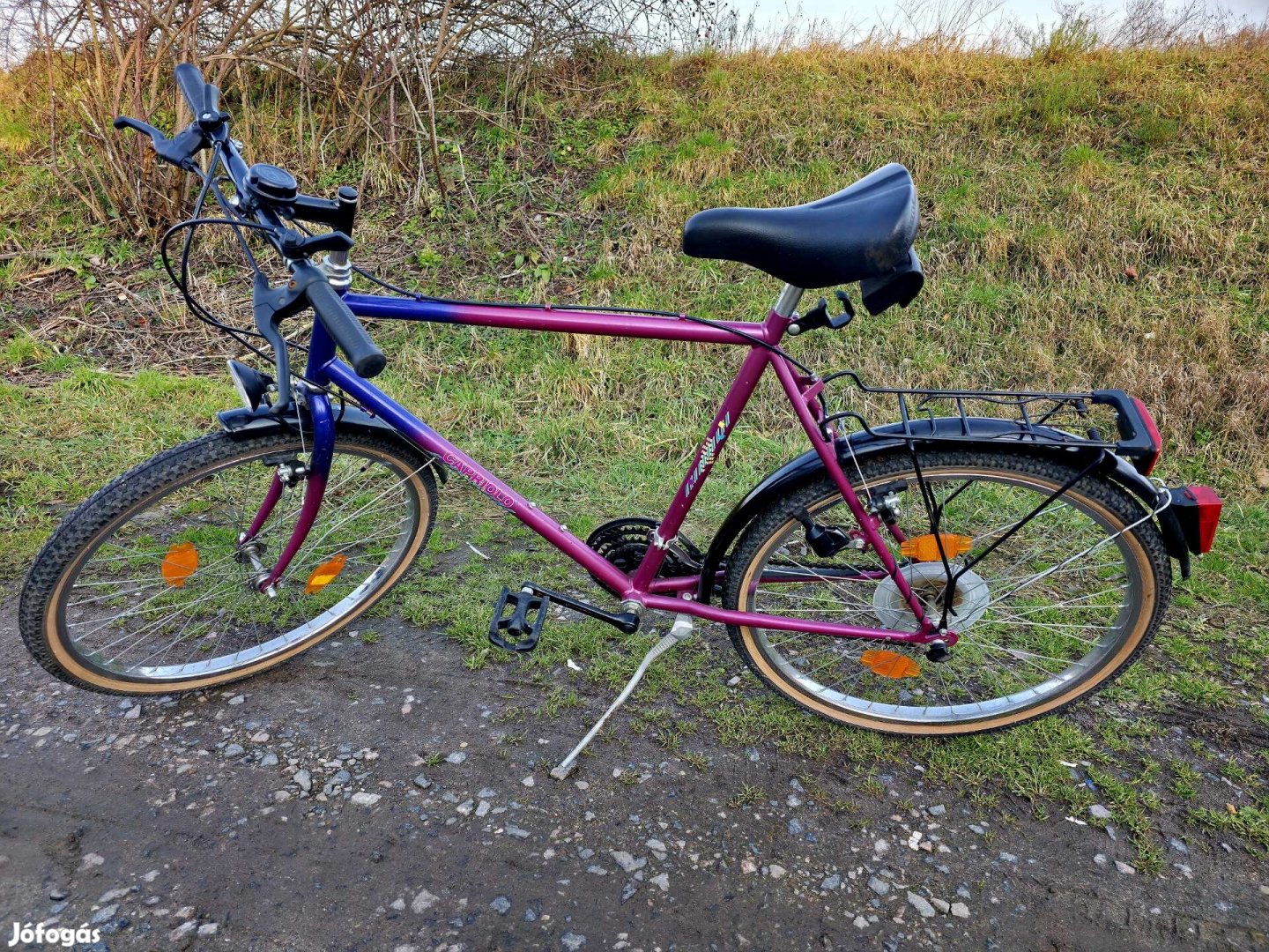 Capriolo kerékpár lila kék színben teljesen gyári állapotban minden működik rajta garázsban állt egy ideje de hibátlanul működik rajta minden lámpa is van rajta dinamó elől hátul.Személyesen átvehető kipróbálható.