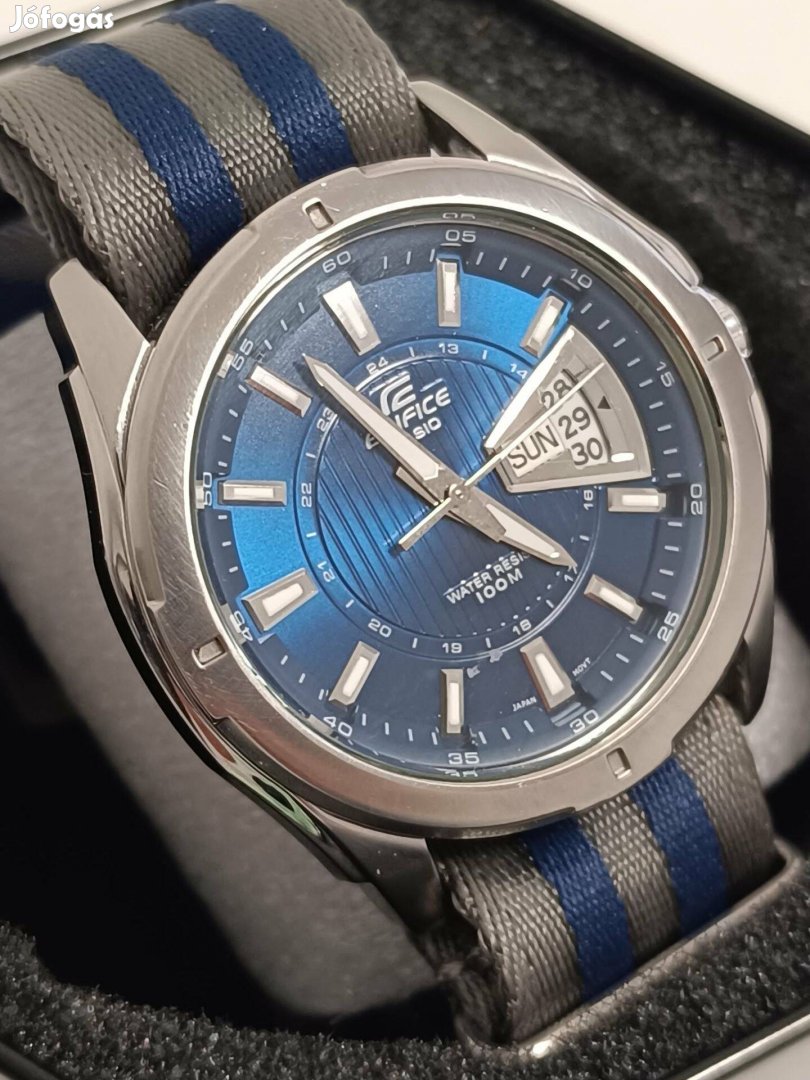 Eladó Casio Edifice EF129 kék számlapos férfi karóra.