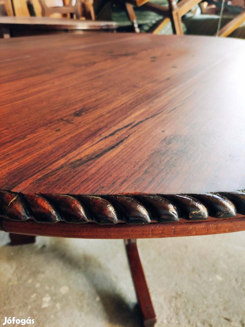 Chippendale stílusú selyemfényű körasztal. Nagyon szép rovátka díszítésekkel az asztal szélén.Közép lábbal.