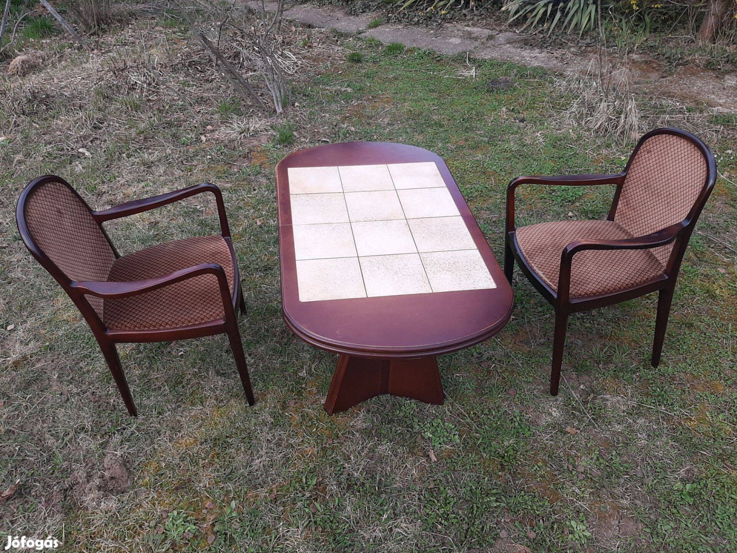 Csempézett állítható és kinyitható asztal két karfás puha székkel