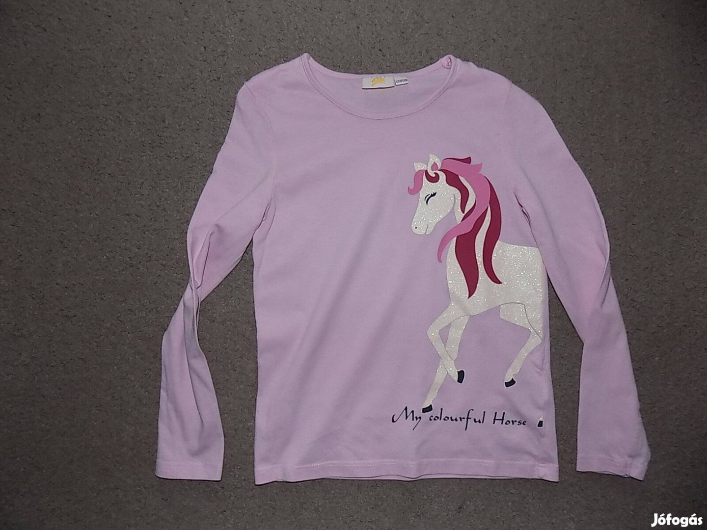 Csillogó csillámpónis hosszúujjú pamutfelső 122-128-as méretben, hibátlan állapotban.